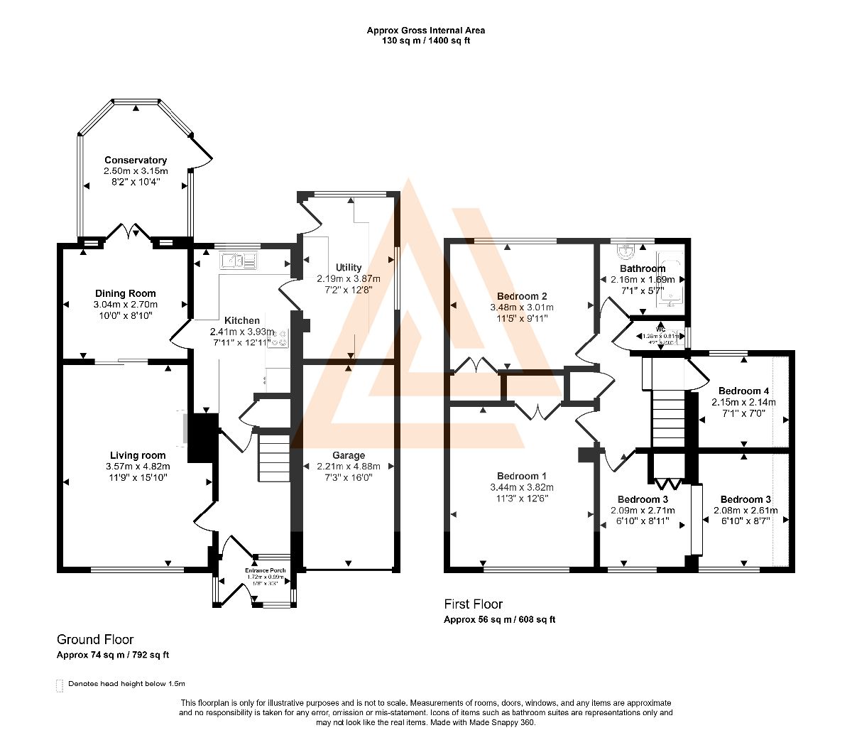 Upstairs, the home offers four well-proportioned bedrooms, each enjoying double-glazed windows, radiators and comfortable carpet flooring. The principal bedroom features built-in wardrobes and a calm front-facing aspect, while the remaining rooms offer flexibility for children, guests or home working. The bathroom is stylishly finished with a bath and rainfall shower, vanity unit and heated towel rail, with a separate WC adding practicality for busy households.